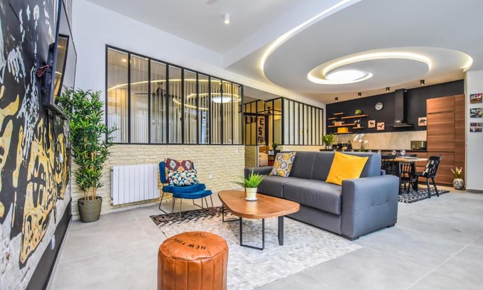 Spacious apartment - 4BR-10P - Butte-aux-Cailles offers accommodations in Paris, 1.6 miles from Gare de Lyon and 1.8 miles from Sainte Chapelle. The property is around 1.8 miles from Notre Dame, 2.2 miles from Opéra Bastille, and 2.8 miles from Rodin Museum. Free Wifi is available throughout the property and Luxembourg Gardens is 1.3 miles away. This apartment includes 4 bedrooms, a living room and a flat-screen TV, an equipped kitchen with a dining area, and 3 bathrooms with a shower and a washing machine. Towels and bed linen are featured in the apartment. For added privacy, the accommodation features a private entrance. Pompidou Center is 2.8 miles from the apartment, while Orsay Museum is 2.8 miles away. Paris - Orly Airport is 7.5 miles from the property.