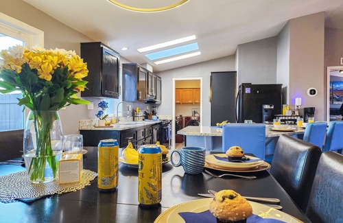 As you enter, you’ll be greeted with a sense of HOME and COMFORT. We invite you to embrace your vacation fully and leave the chores behind. It is designed to help you spend quality time with your family and friends, and make it challenging for you to slip back into your everyday life. Recharge by connecting with yourself, your people, and the nature surrounding you. Walk to the end of the cul-de-sac and watch the soft glow of sunrise. Take a book and read it outside, breathing in the fresh air. Watch your kids and dogs run around and play in the large, fully fenced in backyard. At night, gather around the warmth of the fire pit and share your favorite moments of the day. Look up at the starry sky. Milky Way is easy to see on a clear night.