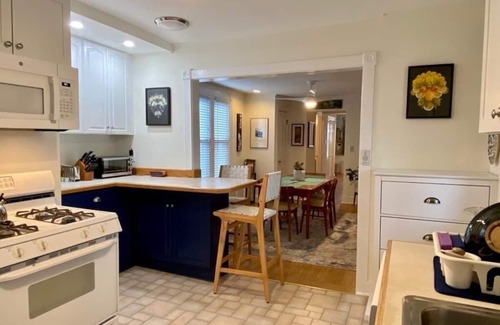 The sun filled corner apartment has 2 large bedrooms - each with a queen bed, 2 full baths, comfortable living room with a sectional sofa and SMART TV, large dining room, fully stocked kitchen, sweet enclosed sunporch and a balcony. Hardwood floors throughout and a private washer/dryer. This apartment is perfect for two couples or a family.