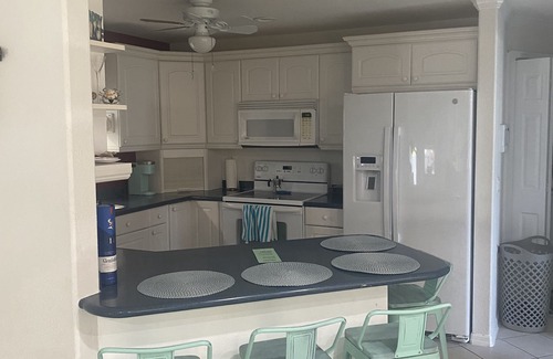 Spacious and very clean two story 3/3 home with open floor plan located in a cozy community in the heart of Hutchinson Island. Walk in to a beautifully decorated living room, which offers a comfy full size memory foam sofa bed and 55' Smart TV. A full bathroom on the first floor and a fully stocked kitchen with lots of counter space and bonus seating on the kitchen counter. Upstairs you'll find three bedrooms two bathrooms. The large primary bedroom includes a queen bed, in-suite bathroom, walk-in closet, Smart TV and private balcony. Second bedroom includes two bunk beds and comfortably accommodates 4 children. Third bedroom includes a queen bed, Smart TV and desk with monitors.
