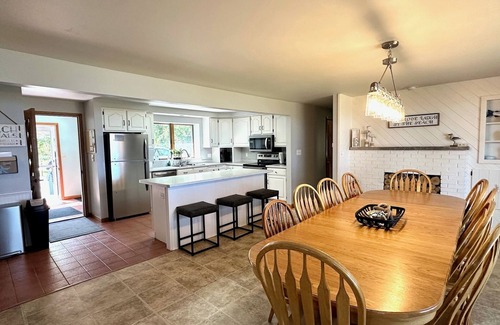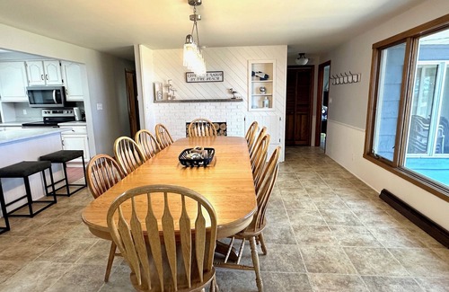 - Fully-equipped kitchen perfect for group meals with an oversized kitchen table and an additional table that seats 8 in the main living area