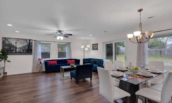 Stay comfortably in this completely renovated,over 2,000 sq. ft. private single family home with 4 bedrooms, 2 full bath, designer kitchen with large center island, office room and attached front loading car garage. Professionally furnished to deliver a high-end living experience for up to 7 guests. Perfectly suited for families and business professionals visiting the D.C. area. Centrally located in Fairfax, VA, minutes to Dulles International Airport (6 miles) and Washington D.C. (35 min)."