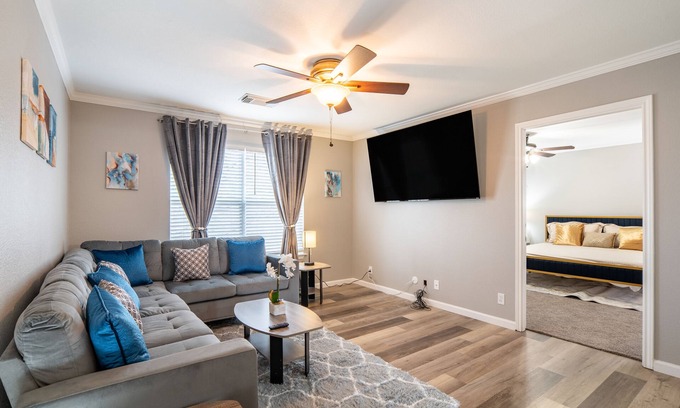 Spacious beautiful home near Kalahari Resorts 8min drive is located in Round Rock. Spacious beautiful home near Kalahari Resorts 8min drive provides accommodation, featuring Pet Friendly, Fireplace/Heating, Guest Services, among other amenities. This House features Pet Friendly, Fireplace/Heating, Guest Services, to make your stay a comfortable one.