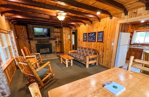 The screened porch sets the tone for your stay - morning coffee and afternoon card games become daily traditions here. Inside, the gas fireplace anchors a comfortable living room perfect for game nights and family gatherings. When summer arrives, air conditioning keeps the whole cabin cool.
