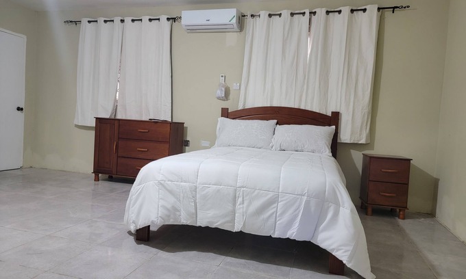 Escape to a lovely 4-bedroom building in Montego Bay. Each room features a full bed, perfect for a good night's sleep. With amenities like AC, a washing machine, and WiFi, guests can relax and unwind effortlessly. The 4 bathrooms are equipped with hair dryers and showers for added convenience. Fall in love with Montego Bay and enjoy the magic it has to offer.