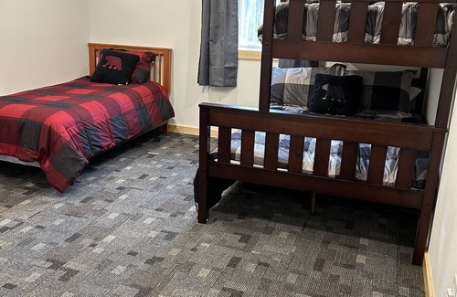 This new cabin was built in 2023. Our cabin is designed to accommodate large groups but is cozy enough just for a single family too. We are conveniently located approximately one mile off of highway 77 East of Hayward Wisconsin. Minutes from Walmart in town and Hayward Powersports, you are always close to supplies and parts. With local restaurants and bars there is plenty to do once you check in. The cabin has Starlink internet for all your streaming or working needs!!