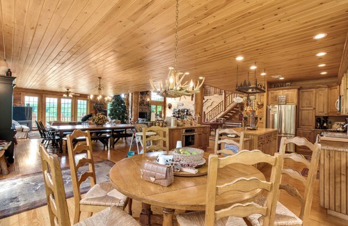 This Windham cabin minutes from Hunter and Windham Mountains, boasts 6 inviting bedrooms, including 1 king bed, 4 queen beds, and 3 bunk beds. With amenities like WiFi, heating, and a washing machine, guests can relax and unwind in this beautiful retreat. The 7 bathrooms ensure everyone has their own space to freshen up. Guests can enjoy scenic views, total privacy, sprawling landscape and truly beautiful hiking trails all on the property. Everything you need for a short or extended stay is here on the property. With local vineyards and 2 ski mountains within 20 minutes, it is truly a year round getaway for anyone looking to relax and decompress. The town is about 5 minutes drive and boasts upscale as well as family dining options, local markets and merchants, and just about anything you might need during your stay. Fall in love with Windham and enjoy the magic it has to offer.