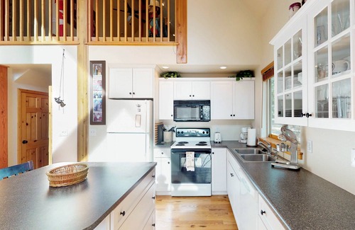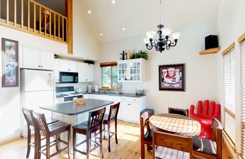 This McCall cabin is great for a family or group of friends wanting to get away from the city and take in the fresh mountain air. The open floor plan ensures everyone can be together as a meal is cooked in the updated kitchen while a fire roars in the hearth. Head upstairs to have a Ping-Pong tournament in the game room or enjoy a relaxing bath in the jetted tub. There is a firepit outside that invites everyone to come out and roast marshmallows while having great conversations under the stars.