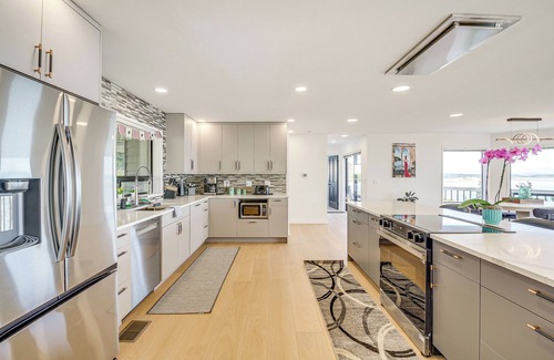 Your Washington escape awaits at 'Crestview Haven,' a modern 4-bed, 3-bath vacation rental in Camano Island’s Country Club community, where no ferry is needed to experience island life. Take in the views from the living room or a deck of your choice. After hitting the beach at Camano Island State Park, cook a meal in the well-stocked kitchen while the kids play in the game room. This pet-friendly home also features a wet bar, picture windows, and 4,000 square feet of living space!