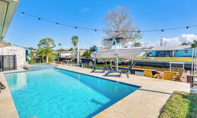 Spacious Canalfront Home w/Pool ~ 1/2 Mi to Beach is located in Hudson Beach Estates. Spacious Canalfront Home w/Pool ~ 1/2 Mi to Beach provides accommodation, featuring Parking, Pool, TV, among other amenities. This House features Parking, Pool, TV, to make your stay a comfortable one.