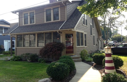This is a very bright, charming, family-friendly updated cottage within a Lake Erie beach community. The open floor plan accommodates gatherings well, centered with a large fireplace with ample seating. The kitchen area is very functional with a gas cooktop placed within a large island which provides seating for 6. The dining table accommodates another 6 to 8. A first floor full bathroom with laundry is available. The second floor consists of 3 private bedrooms and a full bath;the master having it's own half bath and private patio. The basement level provides TV and movie seating,a full second kitchen and bath, as well as pull outs for extra guests. The house is equipped for all season use. It is updated, but retains a cottage like atmosphere. Outdoor entertaining is convenient just off the kitchen on a large private multilevel deck. Our corner lot allows for 6 vehicle off street parking.The handicapped accessible beach is 100 yards from the property. Whether your idea of vacation includes charming coastal towns, fishing, boating, hiking, bird watching, roller coasters, or reading a good book, this cottage will suit your needs.