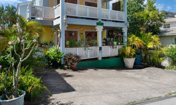 Bajan style building, tucked just a few metres up in Lanes Road. Lets walk along the road to the left of the property. 50m away is Breadfruit Leaf local bar restaurant for authentic Bajan food, then Wonderful Daphnes beachside international restaurant, very special, not cheap but sooooper. Further left is Scarletts - va va voooooom. Plenty of small local tucked away bars to relax and rub shoulders with the locals and have a laugh. Go right along the road Sandy Lane! haunt of the rich and famous (you can walk along the beach to celebrity spot). Just 15 mins walk to Holetown about 6 pm. Check the Beach House on the way for an emergency cocktail. Taxi from airport takes about half an hour.