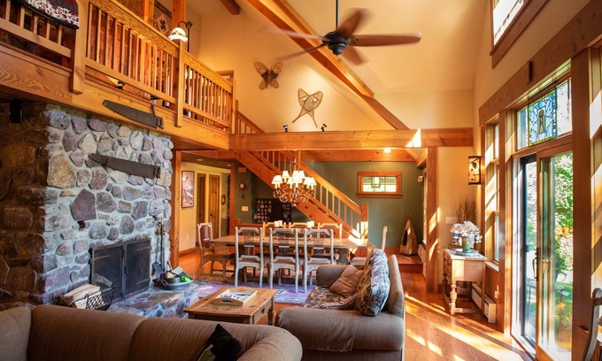 Spacious & Comfortable! Walk to Town, Hot Tub, Best Value In Town-EV charger is located in Lake Placid. Spacious & Comfortable! Walk to Town, Hot Tub, Best Value In Town-EV charger provides accommodation, featuring Skiing, Fireplace/Heating, Entertainment, among other amenities. This Cabin features Skiing, Fireplace/Heating, Entertainment, to make your stay a comfortable one.