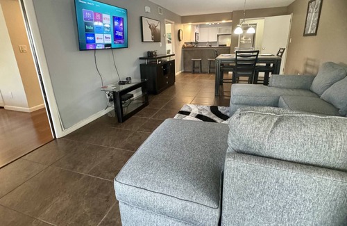 Spacious Corner Unit – 3BR Ground-Floor Condo w/2 Patios, Smart TVs & Scenic Pond Views is located in Wesley Chapel. Spacious Corner Unit – 3BR Ground-Floor Condo w/2 Patios, Smart TVs & Scenic Pond Views provides accommodation, featuring Balcony/Terrace, Security/Safety, Sports/Activities, among other amenities. This Condo features Balcony/Terrace, Security/Safety, Sports/Activities, to make your stay a comfortable one.