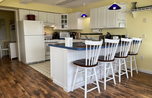 The second-floor also has the master suite, which offers its lucky occupants a spectacular harbor view, a king-sized bed and plenty of shelving and amenities. You'll have trouble getting up in the morning as all bedding is from L.L. Bean and made with quality and comfort in mind!!
