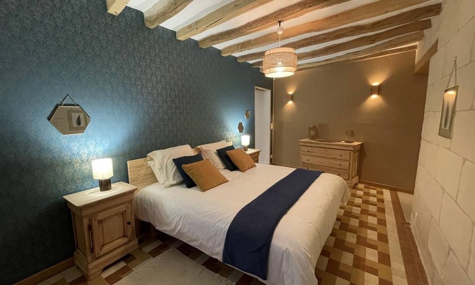 Non-smoking accommodation. You will be in Touraine here and you will also feel the sweetness of Anjou. In the heart of the Loire Anjou-Touraine Natural Park where fauna, flora, typical habitat and gastronomic and wine traditions coexist wonderfully to offer the ideal cocktail for a weekend or a vacation rich in discoveries and encounters. Nathalie and Marc wanted this cottage to reflect their image: welcoming, friendly and warm. The quality of the materials, the colors, the creations of Marc and Nathalie make it a place where you feel well-being and serenity. You will be just as spoiled by the countless riches around: the vineyards of Bourgueil and St-Nicolas-de-Bourgueil, Saumur or Chinon, the Royal Abbey of Fontevraud (a unique architectural gem), Candes-St-Martin and Monsoreau classified among the Most Beautiful Villages of France. Walk or bike ride on the Toue cabanée from the village, a thousand and one emotions await you. Savor, enjoy, happiness is not far away!
