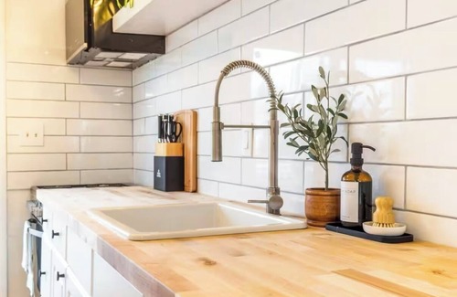 The bright and modern mother-in-law suite upstairs contains two of the bedrooms, it's own kitchen, dining area, balcony, and living room with 36" Smart TV. This unit is connected through an interior and exterior stairwell.