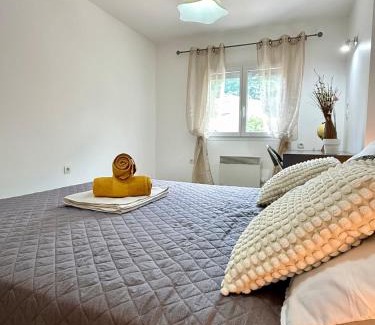 Spacious & cozy - Vue Montagne is located in Goncelin, just 20 miles from Alpexpo and 21 miles from Fountain of Elephants. With free private parking, the property is 19 miles from Grenoble Train Station and 20 miles from WTC Grenoble. The Bastille Grenoble is 19 miles from the apartment and Chateau des Ducs de Savoie is 21 miles away. With free Wifi, this 1-bedroom apartment offers a flat-screen TV and a kitchen with a dishwasher and oven. For added privacy, the accommodation features a private entrance. SavoiExpo is 23 miles from the apartment, while Alps Stadium is 18 miles from the property. Chambéry-Savoie Airport is 25 miles away.