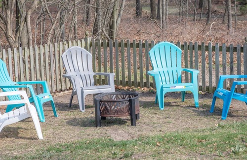This custom home was designed and built by a Navy Veteran with his own hands, with wood he had milled from this property. Opening the front door, you will enter the family room and with three sofas (one pull out couch-bedding available upon request), surrounding the river rock gas fireplace. On your left is the dining room with bay windows looking out on the woods. Looking out in the backyard there is a high chance to see a variety of wildlife: squirrels, birds, frogs and deer (which come to feed in the neighbor’s yard nightly). Off of the dining room you will enter the fully stocked, roomy kitchen. There is a full laundry room off of the kitchen in addition to the three-season room with additional seating. The backyard boasts a deck, a propane BBQ, dining seating for 10, a large fenced in grass yard as well as a firepit.
