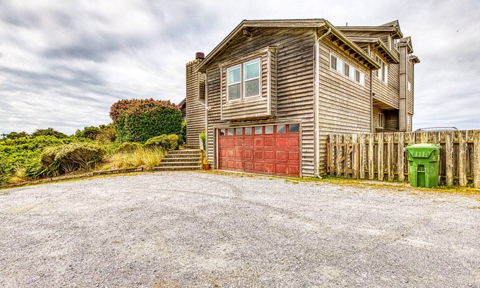 This beautiful home sits high on a bluff with wonderful ocean views! With seven bedrooms, you'll have space for the whole family and even the family dog! Five of these bedrooms have private decks with beautiful views of the ocean. The spacious kitchen has plenty of room for the cooks to make group meals and treats for the whole gang! Perfect for family reunions, golf groups, or church retreats. This home is just a few steps from some of the most beautiful, unspoiled beaches on the West Coast. The nearest beach is only one block away!