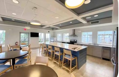 Our pet-friendly home sits just a 1 minute walk from the clubhouse and gym, with the heated pool mere steps away. The coastal surf 🏄🏻♀️ themed decor transports you from everyday life to pure salty beach life.