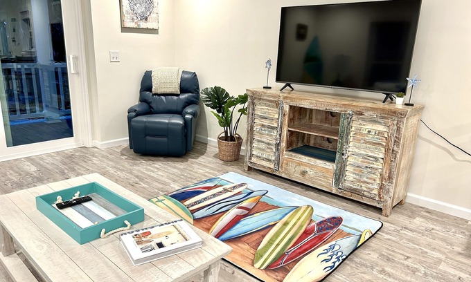 ~ Unique…fun surfing vibe home with retro photos, real surfboards & very 🎼Good Vibrations!