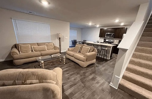 Welcome to our spacious 4-bed, 2.5-bath home with modern amenities. Enjoy a smart lock, central air, and high-speed Wi-Fi. The living room boasts a 60" smart TV, comfortable seating, dining room, and a fully equipped kitchen. Parking includes a 2-car garage and 2 car driveway options. The master bedroom features a king-size bed and ensuite bath, while Bedrooms 2 and 3 have queen size beds and bedroom 4 has a full-size bed. Bathroom #2 and the laundry room are on the hall. 1/2 bathroom is on the first floor. Explore comfort in our home, perfect for families or fishing at Bowers Beach only 20 minutes away. We look forward to hosting your stay!