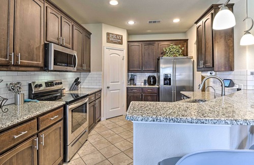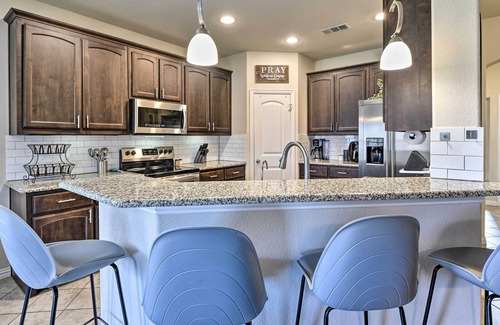 This suburban getaway is ideal for a home-away-from-home experience in the Lone Star State! This 5-bedroom, 2.5-bathroom Ennis vacation rental has everything you need for a trip that’s as relaxing or eventful as you want it to be. Spend lazy days in the sun at Bluebonnet Park, head into Dallas or Fort Worth for family-friendly fun, or pop in a movie in the well-equipped theater room back at the home. End your day with a crackling fire in the huge backyard and all of your loved ones.