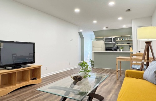 Spacious, peaceful and private 1 bed 1 bath entire home in a standalone 4-unit brick house. The separate entrance leads to the second floor living space. Enjoy an open layout of living, dining and kitchen with tranquil wooded views. Sunny bedroom with plenty of closet space. High speed internet for the best working and entertainment experience. Free parking. Minutes to restaurants & shopping at the Perimeter, Buckhead & Sandy Springs. The convenience of urban living in a safe, quiet neighborhood!