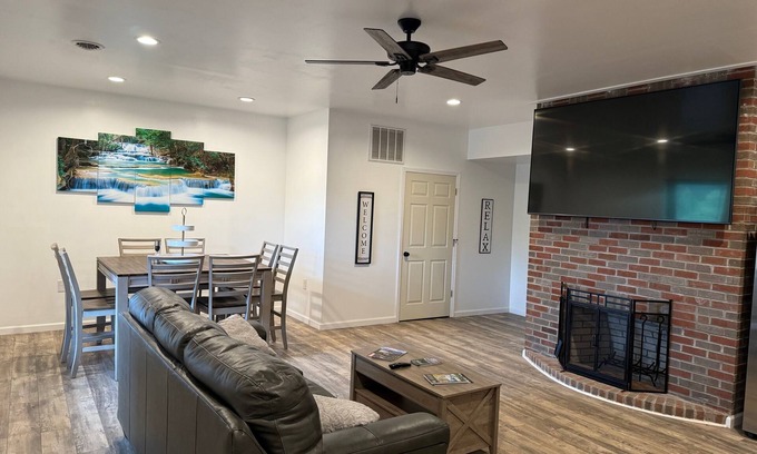 Discover this tremendous brand new 4-bedroom property in Sutton. This charming space is the perfect getaway for guests seeking a cozy and relaxing vacation. With 4 queen beds, everyone will have a comfortable place to rest after a day of exploring. The property offers all the necessary amenities, including AC/heat, iron & board, hair dryers in both bathrooms, WIFI, and a new full size washer & dryer in the laundry room. You have a custom floor to ceiling fireplace with an 86" Smart LG TV mounted on the wall above the fireplace.. The 2 half baths and 2 shower rooms means everyone can get ready all at once. The half baths are equipped with hair dryers.