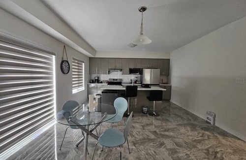 Spacious 4 bedroom 6 beds 3 bath entire home in Gravenhurst. Newly built and furnished. Minimum of 5 night stay but available to book for longer. Perfect for large family gatherings or if you are looking for a local adventure in Muskoka. 10 minute walk to the lake. 10 minute drive to downtown Muskoka, Close To All Amenities: Shops, Restaurants, Coffee Shops, Parks, Schools, Beaches, Library, Golf, Trails & Lake Muskoka.
