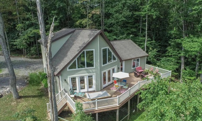 Welcome to Parks and Deck, our centrally located, dog friendly chalet with filtered lake views just 1/4 mile from the lake! Wisp Ski Resort and Deep Creek Lake State Park are both within a 10 minute drive. After a day of adventures, relax on the deck or cuddle up in front of the fireplace with a good book and a glass of wine. Our fully-stocked kitchen is ready for you, but Brenda’s Pizza and other restaurants are just minutes away. Games, a fenced in dog run, and a pack n play are available too!