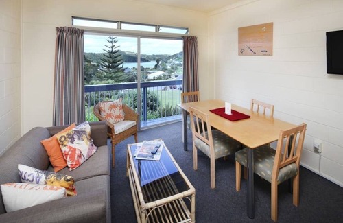 Our spacious 2 Bedroom Units are family friendly, self contained and incl parking. Layouts and bed configurations vary within the units. Each unit has a queen bed, a double bed and 1-2 singles, and a kitchen with microwave, electric fry-pan, and fridge. All linen is provided and you have SKY Guest select TV with 50+ channels and free WiFi. Complimentary toiletries and, tea and coffee making provisions. Includes access to Waiheke Island Motel's facilities.