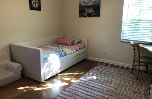 Highlights: family friendly, fenced-in backyard (pets 👍🏽), hi-speed Internet, great free parking, playroom with toys, 55” TVs, private office, kid and adult books.