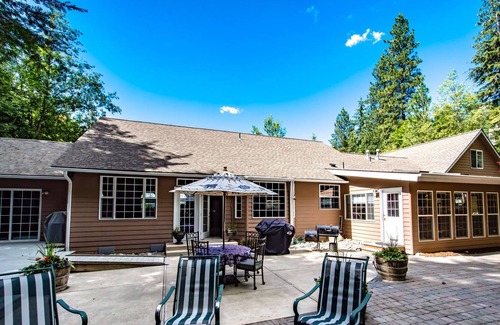 Large master suite plus 3 other large bedrooms, three full baths with large jetted tub in the master bath. Spacious well equipped custom kitchen, great room, two gas fire places. Large den. Bonus main floor exercise/playroom. Huge backyard patio and deck with gas BBQ, hot tub and fire pit. Located on three wooded acres with a large and very private fenced back yard. Back yard is very kid and pet(dog) friendly. High speed wireless internet with Cable and ROKU Tv. Lot’s of parking, and a large full hookup RV space with 50 amp electric service. Space will accommodate up to 45 foot big rig. The home is handicap accessible, but not fully ADA compliant. There is a great view of Hayden Lake and wonderful North Idaho sunsets from the 45 foot front porch. Walking distance to a full service marina with boat and other water sport equipment rentals. Only 100 yards to popular waterfront bistro and grill. Ten minute drive to shopping center andTriple Play Family Fun Park in Hayden. Twenty five minutes to Silverwood theme park and 20 minutes to downtown Coeur d' Alene. Several nearby golf courses and hiking trails. Great fishing in Hayden Lake and other area lakes and streams. Wildlife abounds. This is our dream home and you can make it your dream home for a fantastic summer vacation.