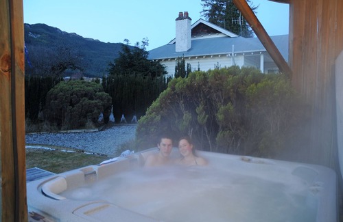 Spacious studio apartment (35sqm; super king bed) with optional adjoining Annex (25sqm; twin singles + bunks) | Ensuite bathroom | Kitchenette | Sofas + tables + chairs | Powerful gas heating | Sky TV & DVD Player | Complimentary DVD library | Free Wifi | Covered deck with BBQ | Outdoor spa pool (shared) | Views up to Coronet Peak skifield | Safe, off-street parking adjacent to accommodation | Laundry available 8am to 8pm