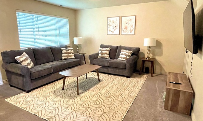 Spacious fully loaded 4-bedroom townhome sleeps 12 freeway access next to BYU is located in Springville. Spacious fully loaded 4-bedroom townhome sleeps 12 freeway access next to BYU provides accommodation, featuring Air Conditioner, Parking, TV, among other amenities. This House features Air Conditioner, Parking, TV, to make your stay a comfortable one.
