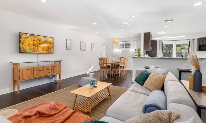 If you're looking for a unique/comfy home that's close to all the action in D.C look no further. Our Japandi-style home is a perfect choice! As soon as you step inside, you'll be struck by our unique design & the open floor plan allows for plenty of natural light to pour in, creating an inviting atmosphere. The living room is spacious and has plenty of seating for all guests. Our kitchen is also equipped with plenty of appliances and a beautiful island that's perfect for family gatherings.