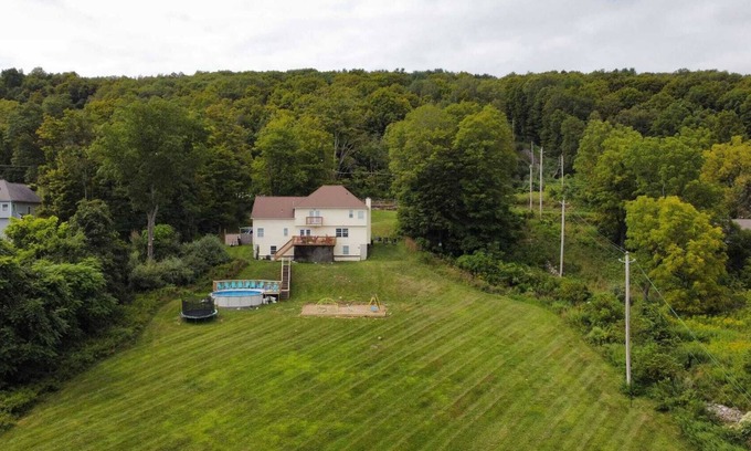 Escape to this stunning 7 bedroom haven in Bloomingburg, NY, perfect for large families, reunions, or group getaways. Enjoy breathtaking panoramic views, a private park, and an above-ground pool