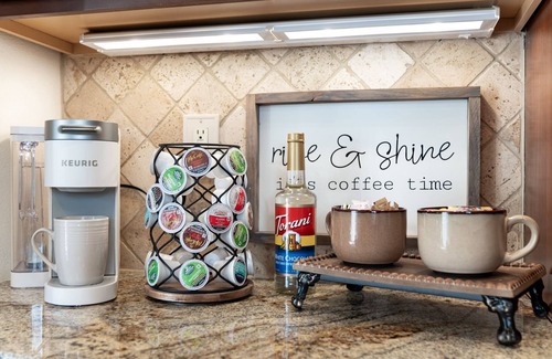 • Coffee! Easy to use Keurig coffee maker with coffee, cream and sugar provided