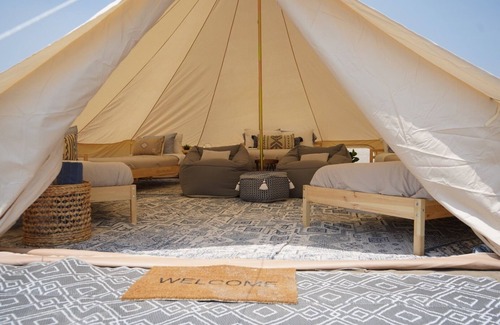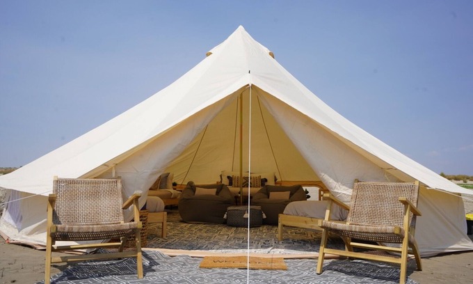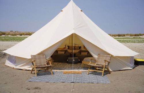 Spacious glamping tent on private sandy beach is located in Juab County. Spacious glamping tent on private sandy beach provides accommodation, featuring Oceanfront, Security/Safety, Fireplace/Heating, among other amenities. This House features Oceanfront, Security/Safety, Fireplace/Heating, to make your stay a comfortable one.