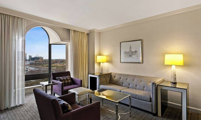 If you are looking for a waterfront stay in the heart of Baltimore, this hotel is the perfect choice for you. You will be minutes away from top attractions like the National Aquarium, the Maryland Science Center, and Oriole Park at Camden Yards. You can also enjoy the famous crab cakes on the waterfront or shop at Harbor Place. You will love the spacious, elegant rooms with a flat-screen TV and plush bed. You will also have access to a range of amenities, such as an indoor pool, a fitness center, and a lobby café that serves breakfast and lunch items to go. On Wednesday - Saturday evenings, you can dine at Explorers, an American Gastropub that offers appetizers and cocktails. This hotel is an award-winning property that has received the AAA Four Diamond Award and TripAdvisor's 2021 Certificate of Excellence. You will be impressed by this hotel's refinement, charm, and laid-back style. Experience the best of Baltimore from this luxurious waterfront hotel.