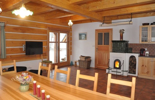 Welcome to Holiday House Zdeněk, a spacious wooden retreat on the edge of the quiet village of Dlouhý. From the terrace and garden, enjoy sweeping views of Mount Kozákov and the Giant Mountains panorama. The interiors are thoughtfully designed with warm wooden furniture, a fireplace that sets a cozy atmosphere, and a well-equipped kitchen ideal for preparing meals for family or friends. With five bedrooms, two bathrooms, three toilets, and a private sauna, the home offers comfort and space for groups to relax together.
