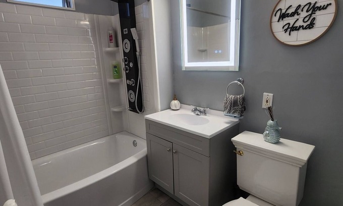This stylish place to stay is perfect for family, friends, or work trips. This apartment is on the second floor. It was recently fully renovated. It has 3 bedrooms and 1 full bathroom.