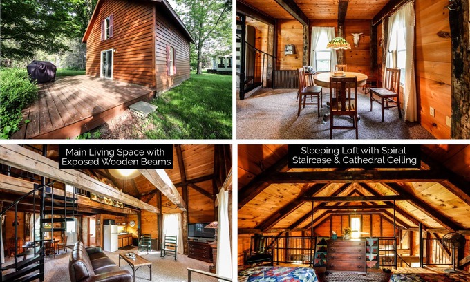 The cabin boasts a comfortable modern interior accented by beams from the 1700s. A perfect cozy getaway!
