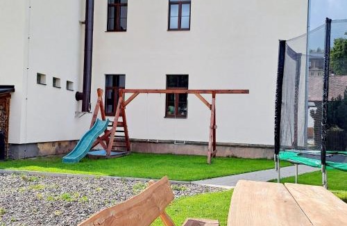 Spacious holiday home with barbecue offers accommodations in Horní Maršov, 18 miles from Bus Stop Strážné and 21 miles from Western City. With garden views, this accommodation features a terrace. The property provides barbecue facilities and outdoor furniture. With free Wifi, this 4-bedroom vacation home offers a cable TV, a washing machine, and a fully equipped kitchen with a dishwasher and oven. Towels and bed linen are featured in the vacation home. There's also a seating area and a fireplace. There is an on-site bar. Guests can relax in the garden at the property. Wang Church is 24 miles from the vacation home. The nearest airport is Pardubice Airport, 55 miles from Spacious holiday home with barbecue.