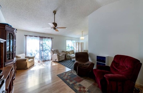 This is a 4 bedroom house with full kitchen and living area in a peaceful, safe, family-friendly neighborhood. It has free WiFi, and tv for entertainment. The space would be most comfortable for groups up to 12, but if you are much larger group, you can message me and will help you with the accommodation.
