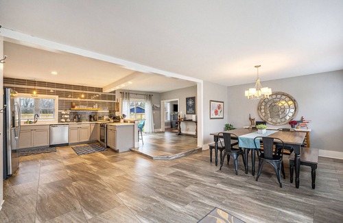 Located a short drive from Douglas and Saugatuck, this two-story home will be perfect for the whole family. This retreat offers plenty of room for the perfect getaway with a main level ensuite with king-sized bed, three queen bedrooms, and a kid-friendly bunk room. The fully stocked kitchen with updated appliances will lend themselves to gatherings and cookouts alike. Enjoy movie nights in either of the two cozy living spaces with streaming capable flatscreen TV's. Challenge your friends or family to a board game or a game of Ping-Pong in the converted garage recreational space. The fenced in backyard area equipped with a wood burning fire pit, gas grill, 8 person hot tub, and private patio will be the perfect setting for vacation memories that will last a lifetime.