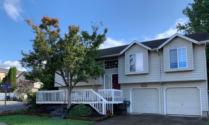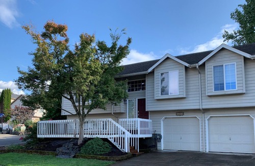Bright, open and Airy Split level home with lovely front deck and back yard. All rooms are furnished with quality linens and tastefully decorated. A short drive to multiple Vineyards for wine tasting close to the State Capital. Shopping and restaurants (including the coming soon In-N-Out burger) walking distance away as well as the Volcano's minor league baseball stadium. Our home is also situated on the Keizer Miracle of Christmas Lights Display route. 13 min drive to fairgrounds.