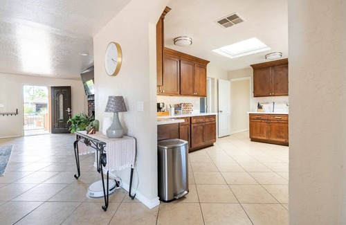 Bring the whole family to this great home with lots of room for fun! Escape the heat in our 20,000 gallon, 9 ft deep pool(heated in the winter), or get your hoop on with a fun game of basketball! Need a tan? Relax on the rooftop sundeck for those nice Arizona UVs. Or have some friendly competition with a game of foosball or one of our many board games we have on deck.